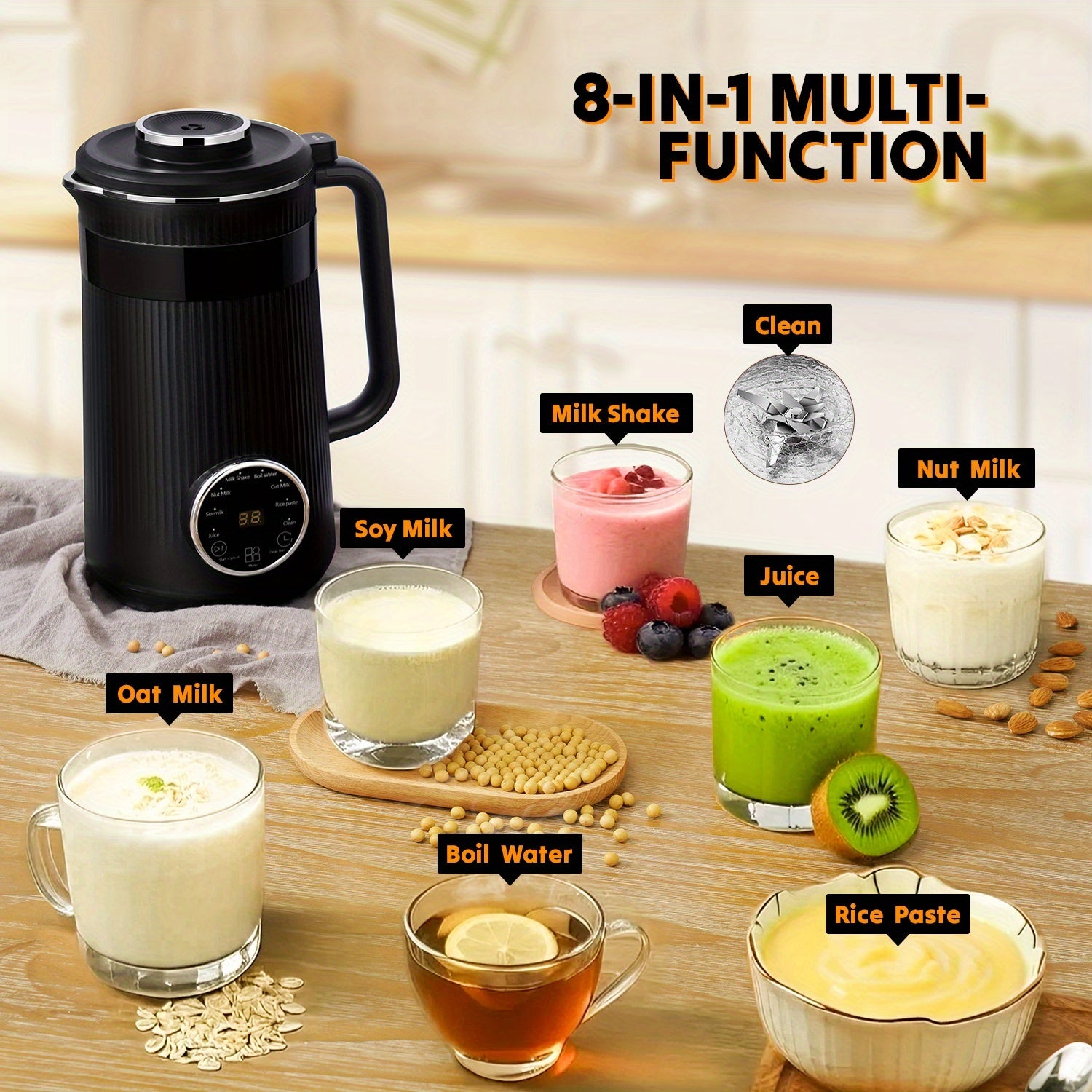 8-in-1 Nut Milk Maker – 32oz Plant-Based Milk Machine with Delay Start & Keep Warm (Black)