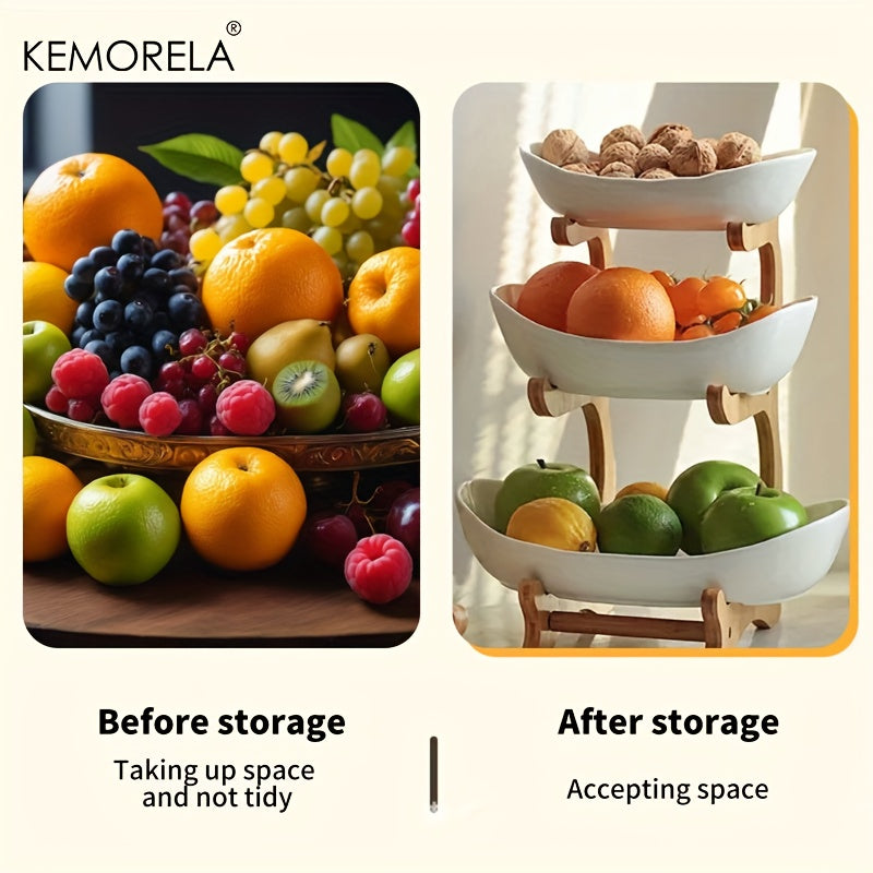 2/3-Tier Kitchen Fruit Basket – Large-Capacity Countertop Storage Bowl Set (White & Green)