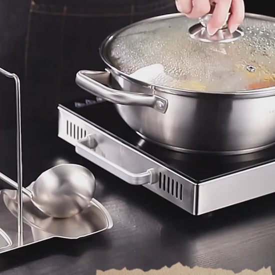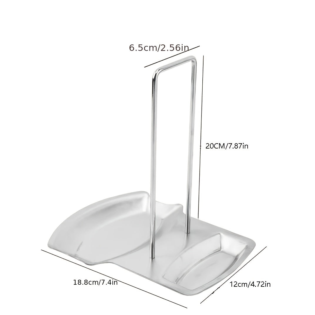 Stainless Steel Pot Lid Rack – Wall-Mounted Organizer with Drain Tray & Spoon Rest (No-Drill)
